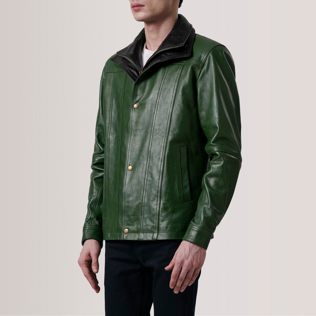 Gatsby Green Leather Biker Jacket