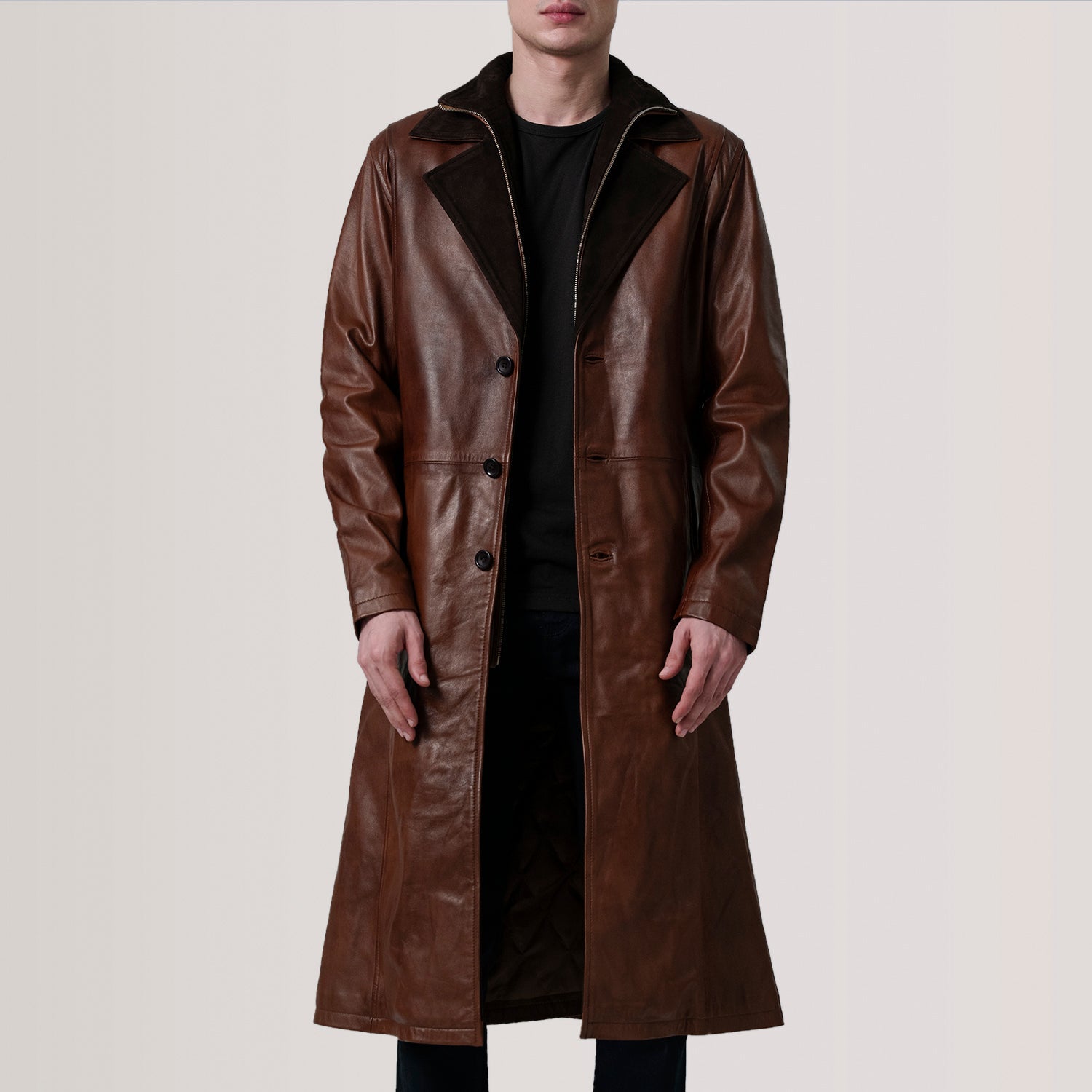 Charlton Waxed Brown Leather Single Breasted Coat